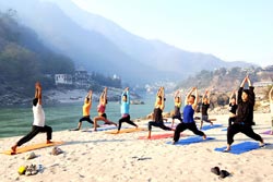 Yoga in Ganges, With the Roseate Ganges Rishikesh